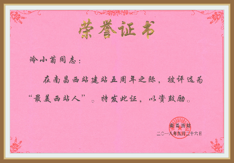 廣州艾麥企業有限公司的員工代表們受邀參加了此次頒獎晚會,南昌西站開站五年以來,我司冷小菊從一名普通的保潔員成長為南昌西站保潔部副總監,她每天在南昌站11萬平方米的土地上往返奔波,她帶領員工譜寫了西站干凈整潔的美妙樂章,為廣大旅客創造了良好的舒適的旅行環境。冷小菊被南昌西車站評為''最美西站人" 。